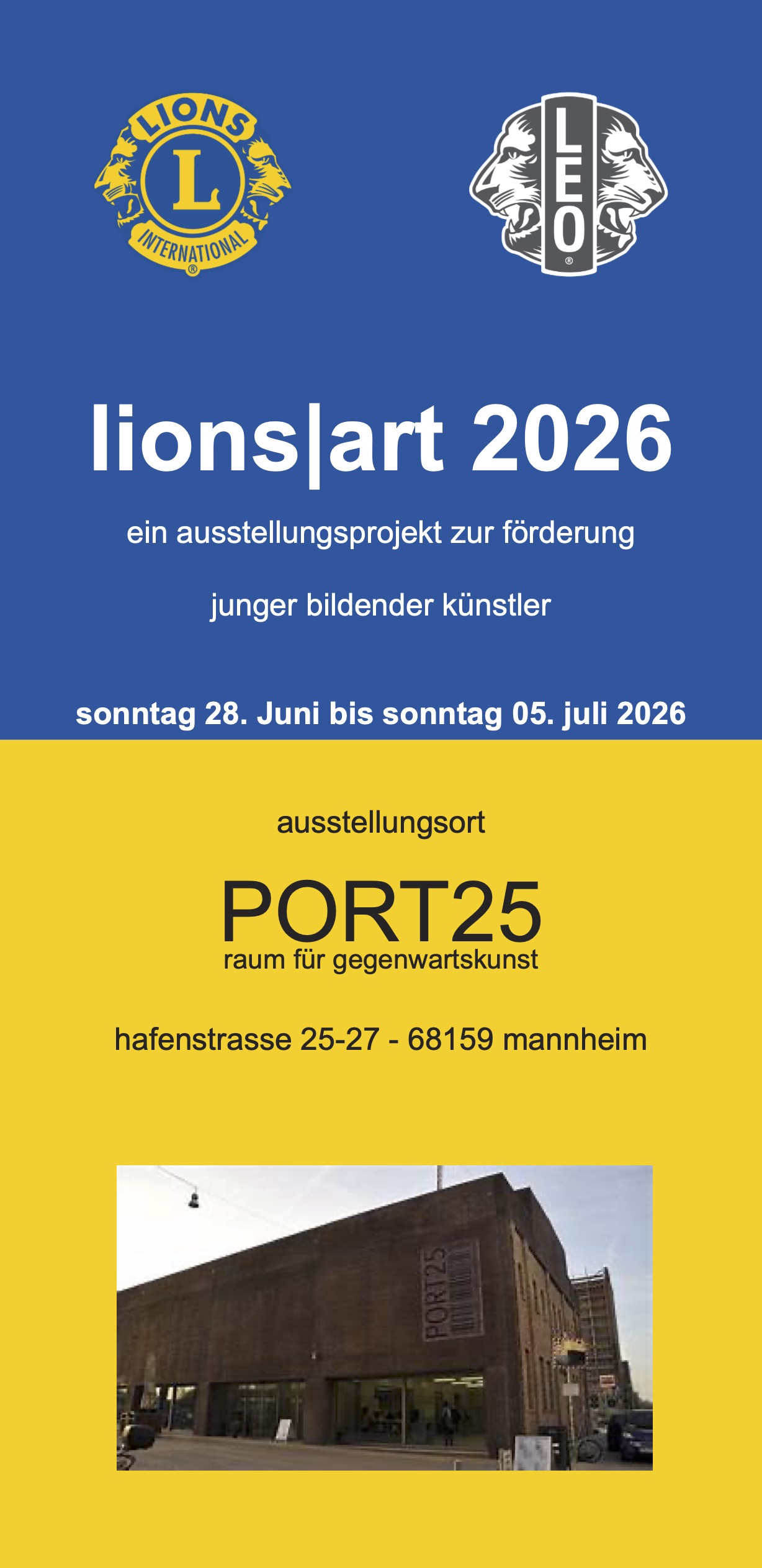 Lions|art vom 28. Juni bis 5. Juli 2026 im PORT25 - Raum für Gegenwartskunst Hafenstraße 25-27, 68159 Mannheim